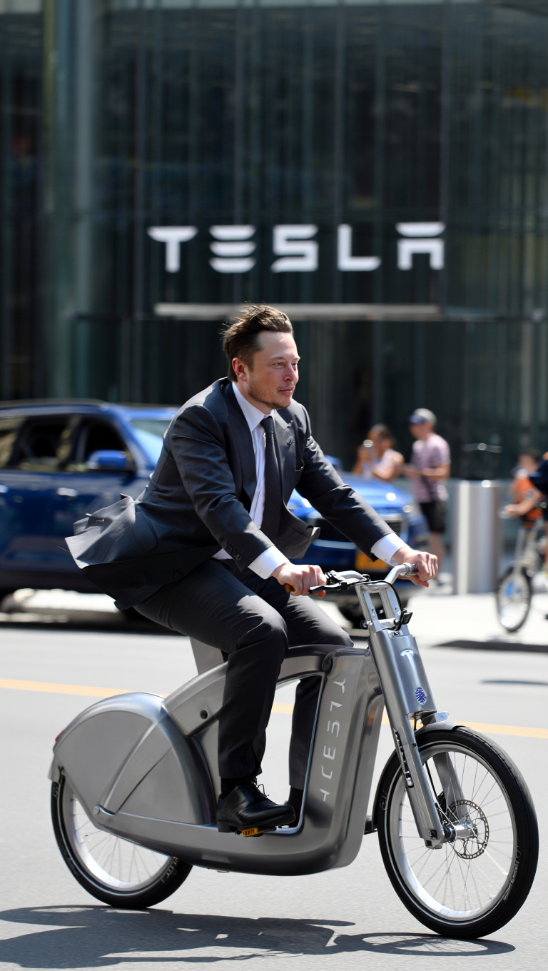Elon Musk spotted riding a Tesla bike to work — sleek, silent, and all-electric.